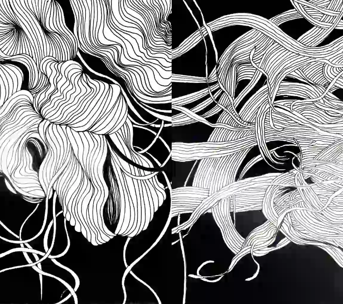 Was ich nicht sagen kann, drücke ich mit Stift und Pinsel aus. Seit meiner Kindheit. Wann immer es geht, stehe ich am Maltisch, schaffe große oder kleine Formate, die ich gern ausstelle. Manchmal möchte ich schnelle Ergebnisse haben – dann zeichne ich mit feinen Tuschestiften Linien auf Fotopapier. Ich liebe die Kraft der handgezeichneten Linie.